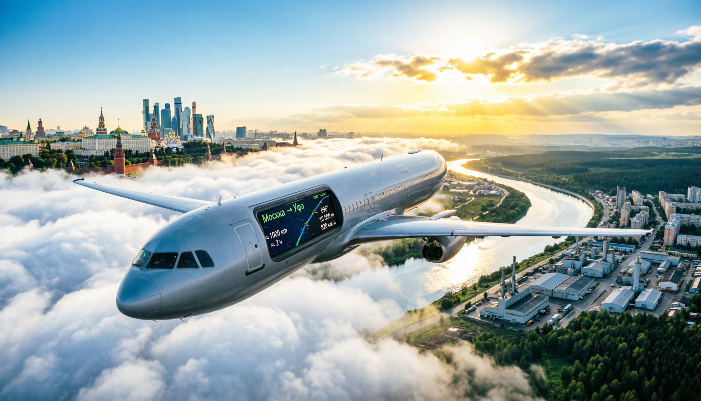 Маршрут между Москвой и Уфой пролегает на расстоянии примерно 1175–1180 км по прямой между аэропортами, и среднее время полёта составляет около 2 часов в воздухе в зависимости от выбранного рейса и погодных условий. Именно поэтому авиаперелёт часто становится оптимальным решением по сравнению с наземными видами транспорта — затраты времени на дорогу значительно ниже.